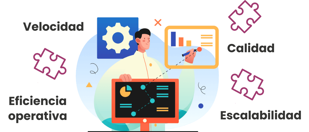 - Velocidad: Reducción drástica de los tiempos de ciclo (procesos de días a minutos).