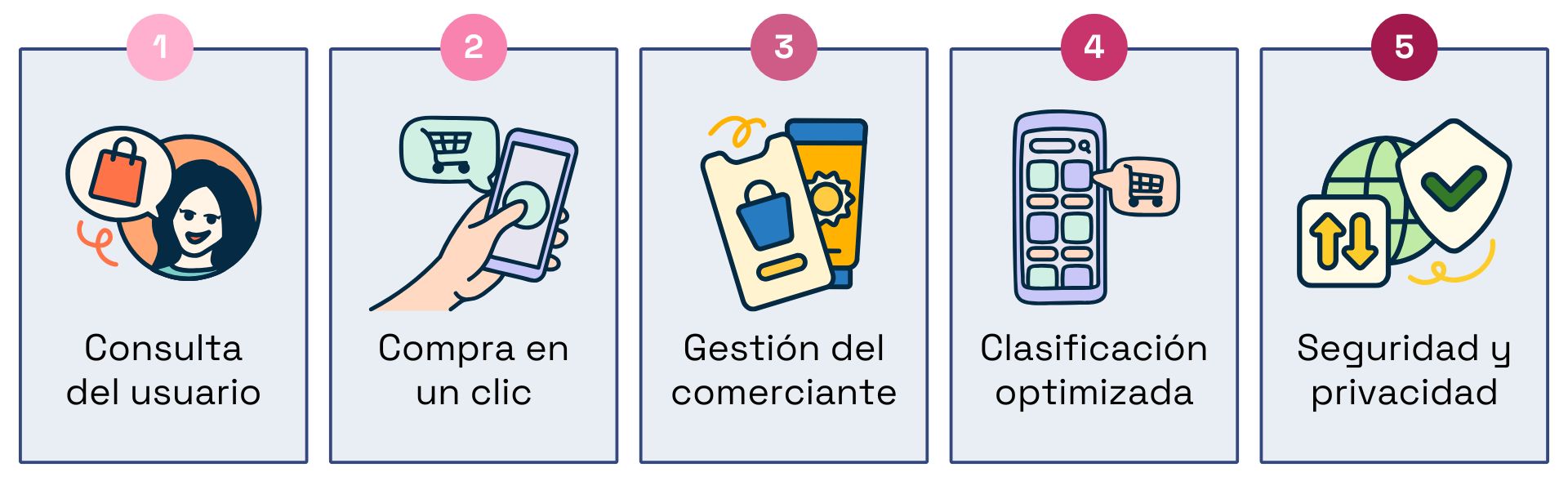 Todo el proceso ha sido diseñado para que el usuario mantenga control total, confirmando explícitamente cada paso antes de realizar cualquier acción. Los pagos solo se autorizan para importes y comerciantes específicos, y la información compartida se limita a lo estrictamente necesario para completar la compra.