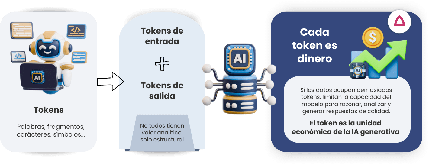 Si los datos ocupan demasiados tokens, limitan la capacidad del modelo para razonar, analizar y generar respuestas de calidad.